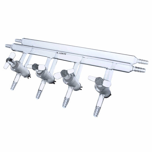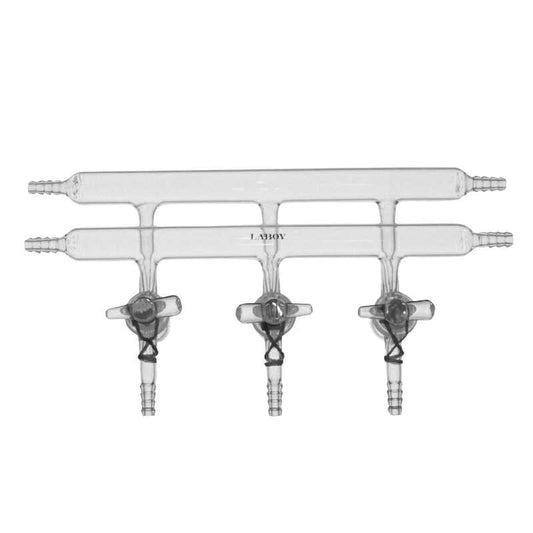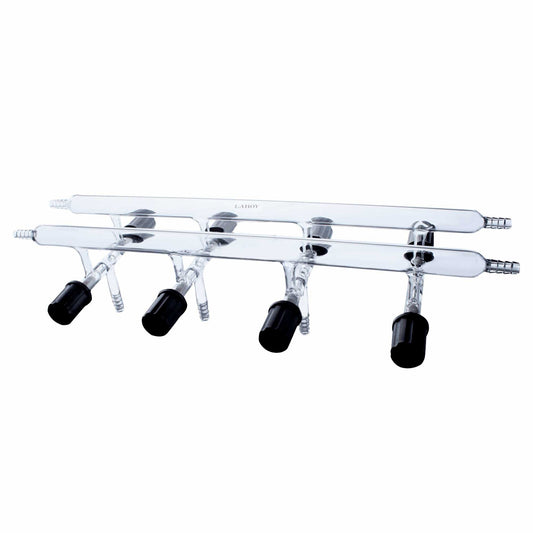Glass High Vacuum Double Manifold with 4mm Double Oblique Hollow Glass Stopcocks for Schlenk line